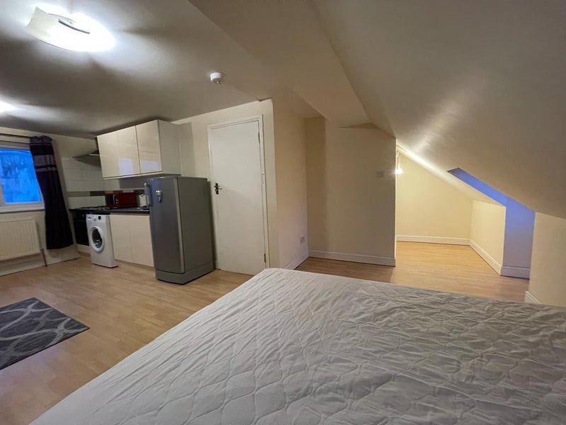 Good sized studio (loft room) in house with private bathroom just 5 minutes walk from Neasden tube station (zone 3 Jubilee Line). Neasden shopping centre along with various bus routes are just a short walk away.