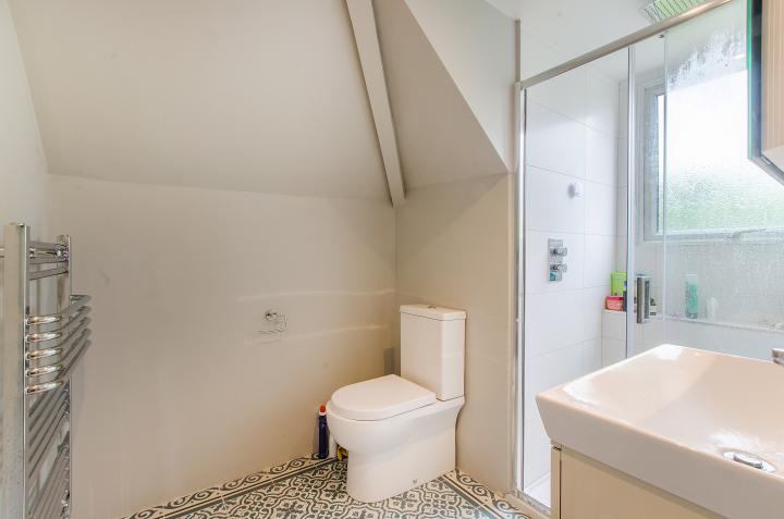 The flat is set in a grand Victorian semi detached building and benefits from having the main staircase so it feels more like a house. Split level with a good sized separate kitchen with dining table.