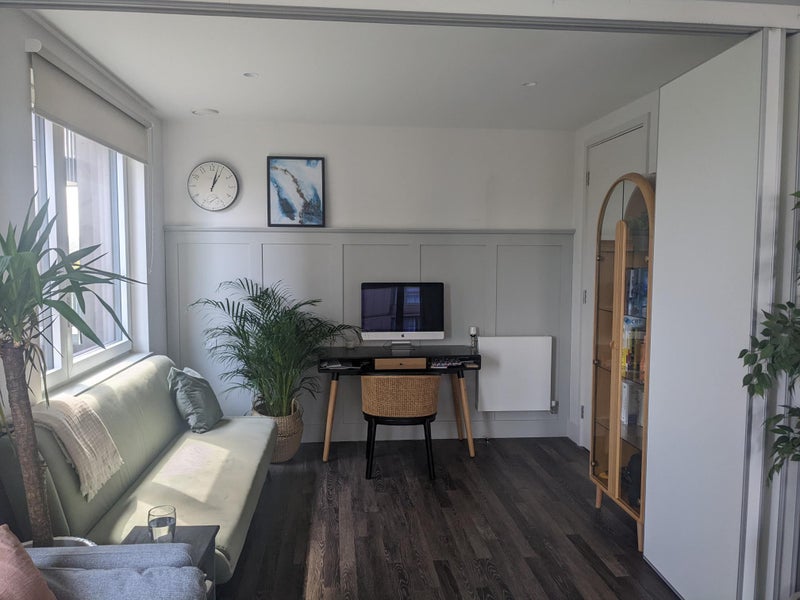 I work for the NHS (as a therapist), I currently work from home 4 days per week and in the office once per week. The flat is technically a three-bed flat, but use the ‘third bedroom’ as an office instead. It is really versatile, as it is separated by a partition wall to the living room so we can open and close that to suit us! There is scope for more than one person to work from home at the same time, but ideally, due to the nature of my role, this set-up would ideally suit someone who was more in the office than not!