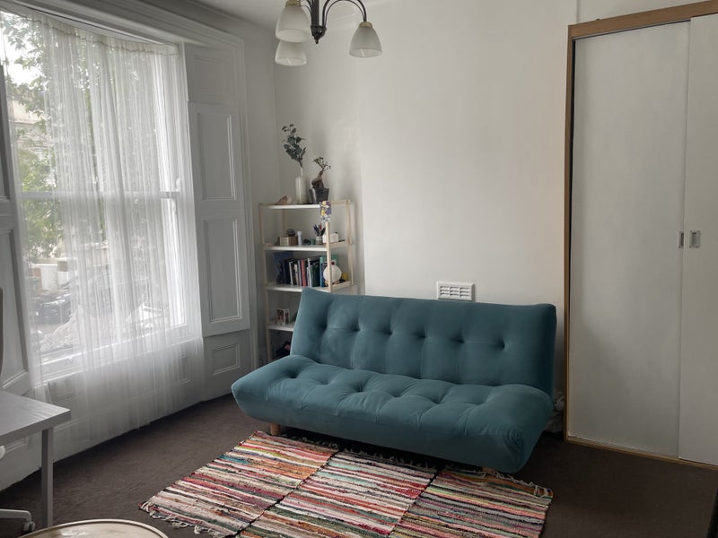 A spacious Ground floor modern studio flat set in a Victorian building close to New Cross Station. The property is light and airy and comprises a hall, a bright room with ample space for sleeping and living quarters, and a showroom and bathroom. The large kitchen upstairs is shared by a single mature lady upstairs.