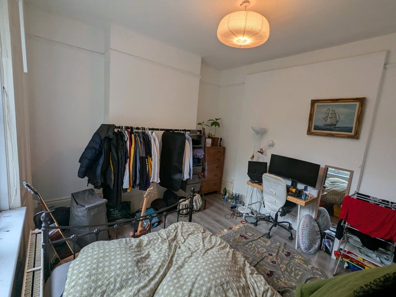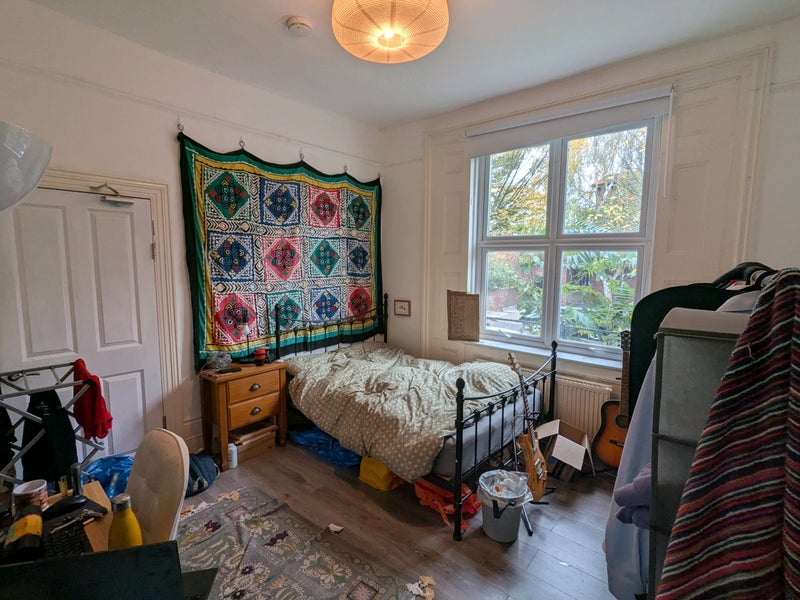 Big room with lots of light in a friendly house of musicians. The house has a very chill vibe and we often eat dinner and listen to music together. We're quite considerate housemates and are not noisy. We're looking for someone to make a great addition to our lovely household:))