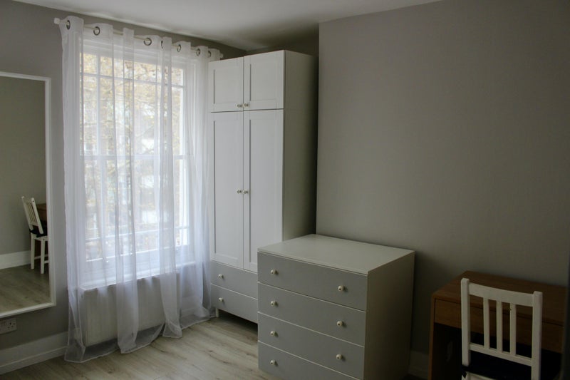 Each room comes fully furnished with a comfortable double bed, chest of drawers, table, and wardrobe