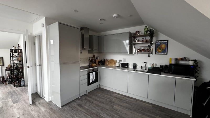 The flat itself is a new build in a former converted pub and less than two years old. We were the first tenants in, so it's all still in immaculate condition and comes with full ammentities - washing machine, tumble dryer, dishwasher, oven and induction hobs, plus plenty of cupboard and storage space. We're on the second floor the building and there's also a bike store on the groundfloor, with access to the building via keyfob for security and mailboxes by the door.
