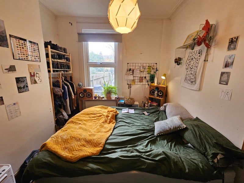 Hello! I'm looking for a flatmate as one of them has moved out. The room is a double, that overlooks the garden. The house also has a basement for storage, a well equipped kitchen, a lovely living room and a cute little cat. The room itself has more than enough room to fit a bed, a desk and wardrobe.