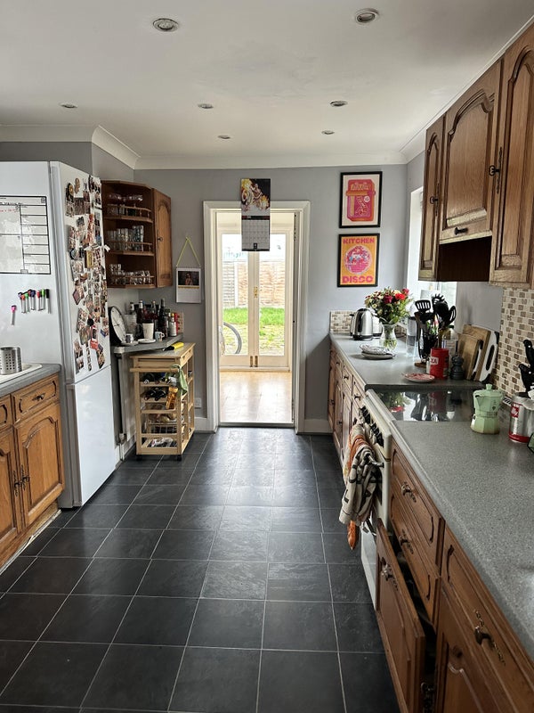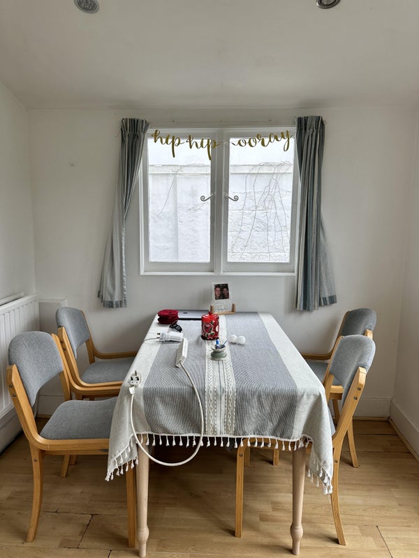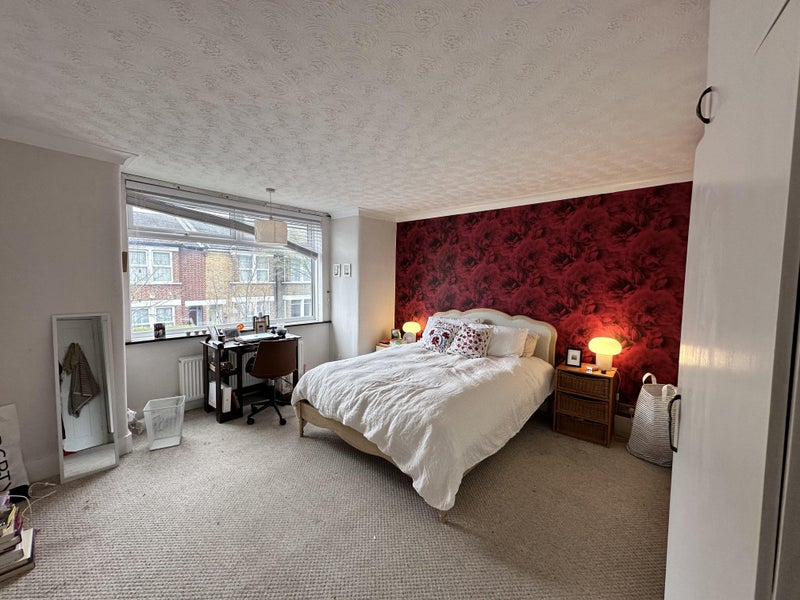 🏡 The room is a large furnished double room with inbuilt wardrobes and a king bed located upstairs. The home is 3 bed, 1.5 bath, with a fully stocked, spacious Kitchen with lots of storage and washer/dryer, sunny dining area, cozy living room, and a backyard (with a BBQ- ideal for impending London summer!)