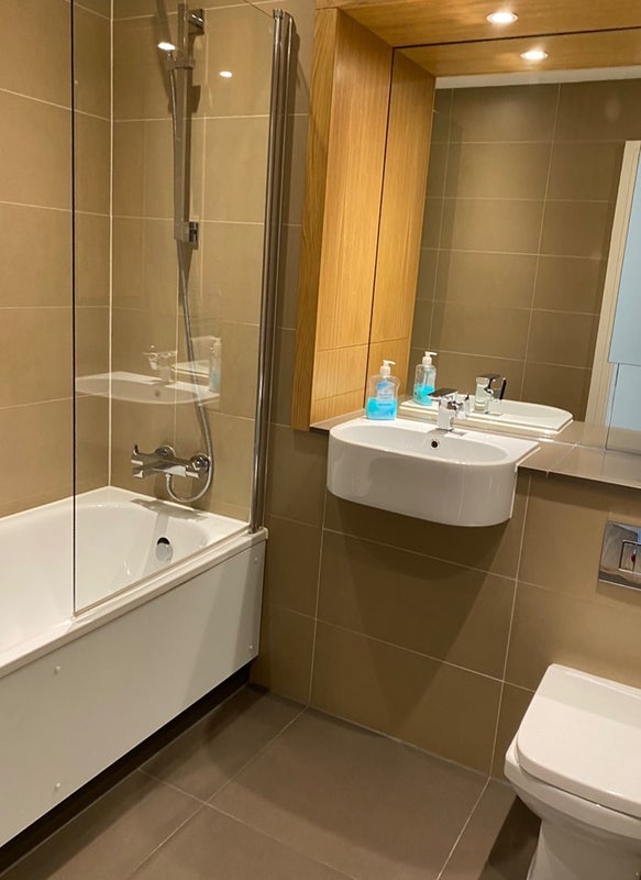 The flat itself is situated on the seventh floor of a modern apartment building. The layout is a two-bedroom, two-bathroom apartment, and the room available comes with its own separate bathroom. The bedroom is a comfortable double room with good space. The flat is also a corner unit, which means the living room and kitchen area are noticeably larger and brighter compared to many standard two-bedroom apartments. The living room has access to a balcony where you can enjoy some fresh air and open views.