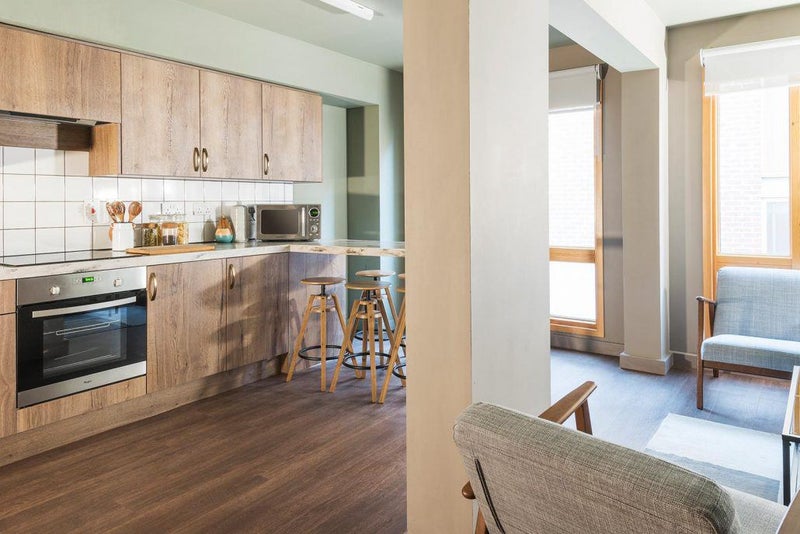 - A 14m2 en-suite bedroom in a shared apartment with a shared kitchen (shared kitchen size: 28.5m2)