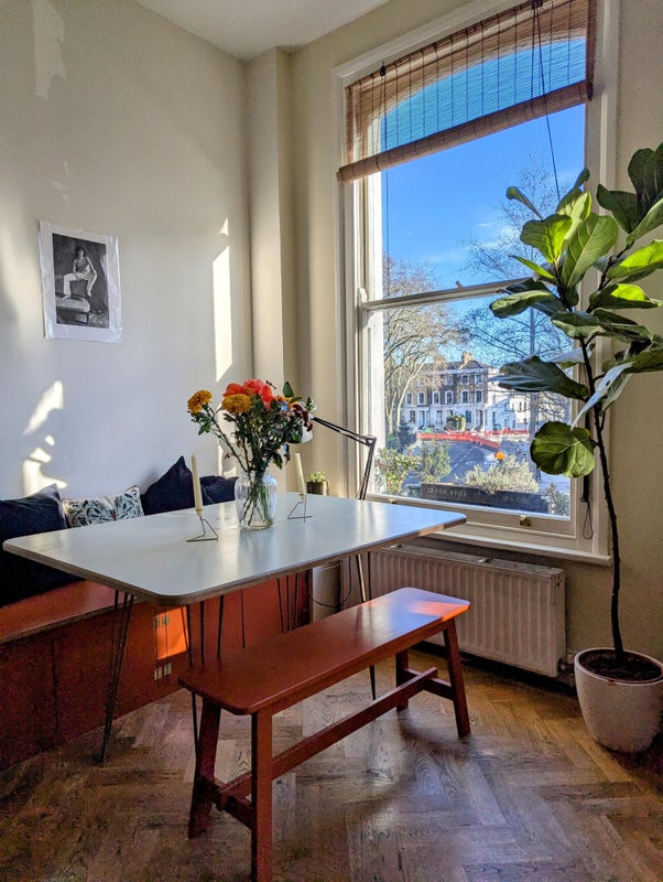 Available MID JUNE short lets only - up to 6 months. Newly decorated Georgian apartment, parquet floors, fully furnished including linens. Would suit a single professional, decoration finished to a very high standard. Council tax included. It is situated on Newington green above a restaurant so there is a certain amount of traffic and restaurant noise but usually done by 11pm! Right in the middle of vibrant and fun Newington green and very close to both Highbury, dalston junction and canonbury.