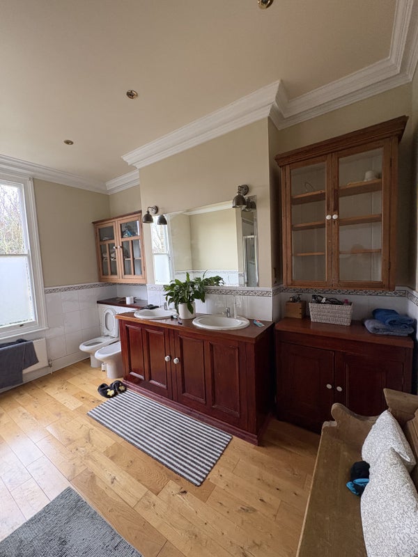 Three gorgeous rooms to rent in Newington Green. The owners would like to keep one room in the property which they may use for a week or so every 3 months as they have family in London. The property has a large garden with a wooden deck at the back with a large picnic table. Two bathrooms, one big and one small. The large bathroom has two sinks, toilet, bidet, shower and bath as well as lots of storage. The smaller bathroom has a shower, toilet and sink. The house has a utility room with a second fridge, washing machine and storage. The kitchen/living room and diner space is large with a door that opens out to the garden. There is a cellar for bike storage and an attic for additional use/office.