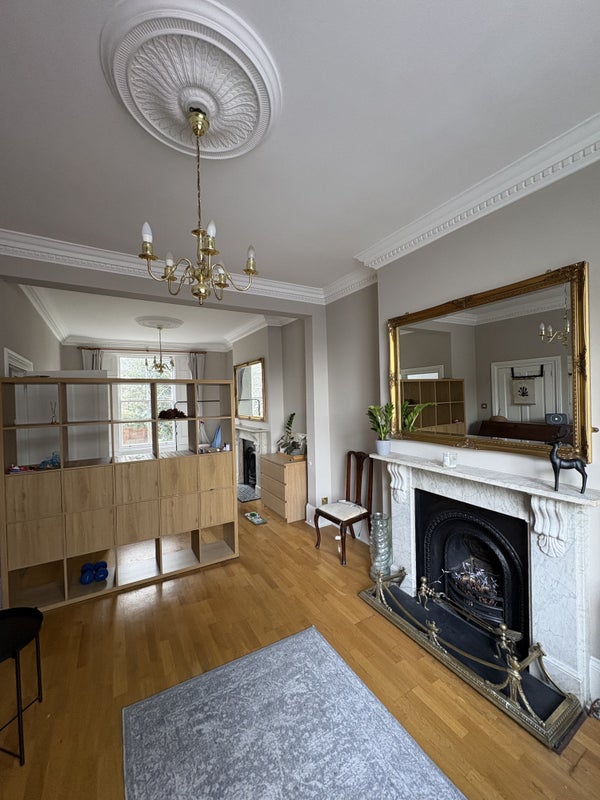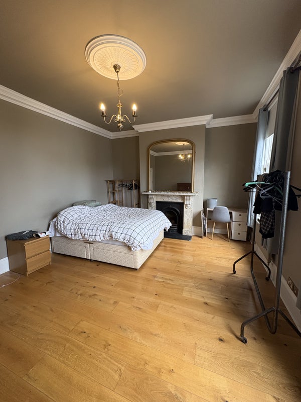 - Double room which is split by a bookshelf. This creates almost a private living room/office space that faces the street and a more private bedroom space which faces the garden