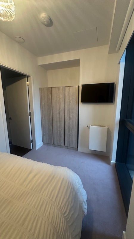 It’s a small double room with a triple wardrobe, storage under the bed and direct views of the shard from the room.