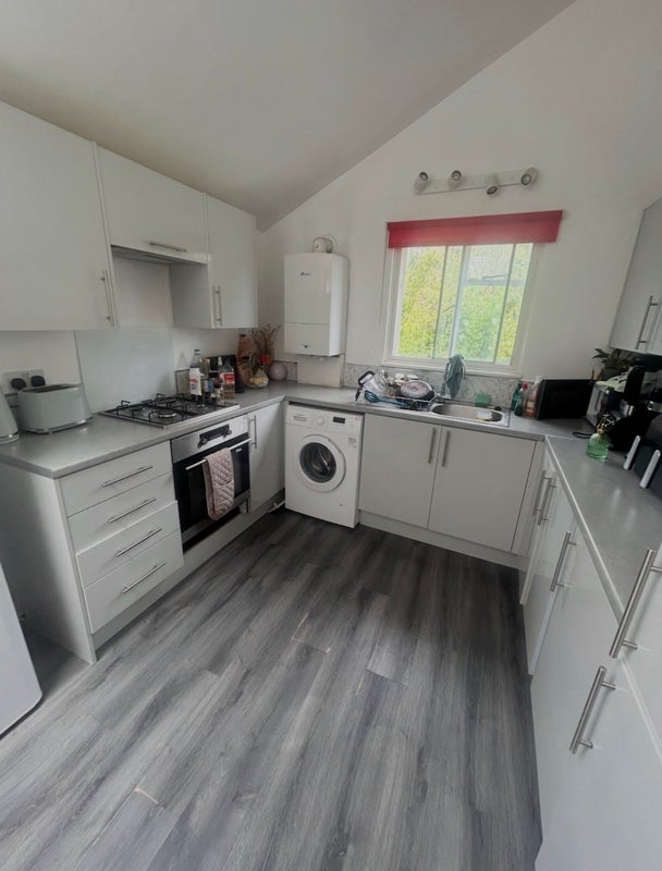 There is a spacious kitchen & shared bathroom for all three bedrooms. There is one bedroom on the same floor as the kitchen & bathroom and another upstairs. There is a large living room with two couches, a table and a tv which is very cosy and perfect for chilled nights in. The bedrooms are double rooms with plenty of storage.