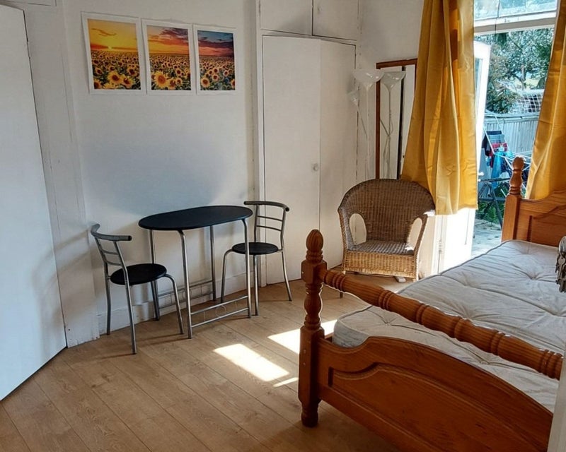 Huge room with two double fitted wardrobes, double bed, table & chair Overlooking the garden