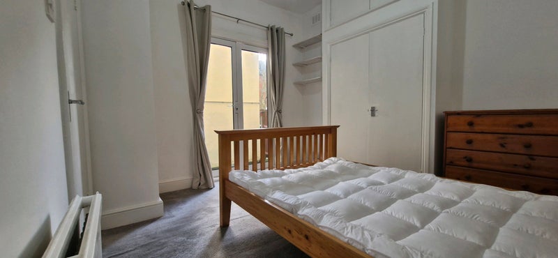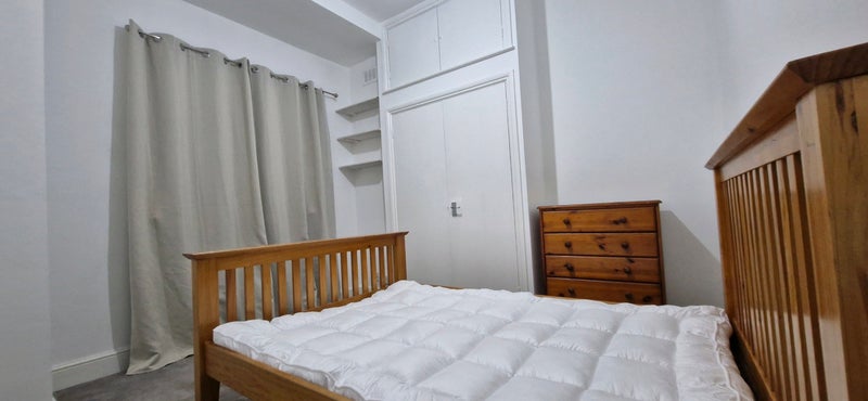 There will be brand new divan bed bases and mattress in both bedrooms (unless the wooden bed frame is preferred in main bedroom, as shown, or a small double is preferred in smaller bedroom, although regular double bed fits in this room).