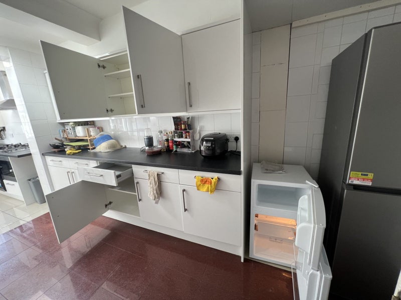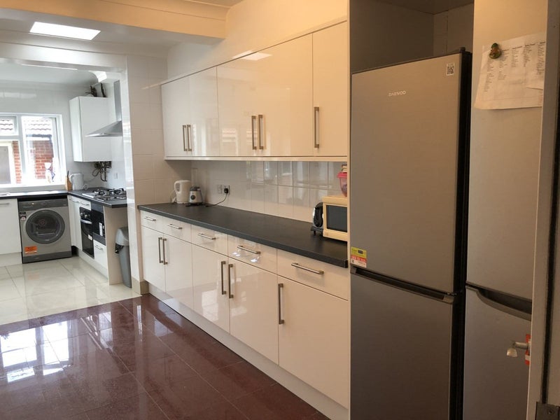 All sharers (mainly the three rooms on the first floor ) use the big communal kitchen on the ground floor. There are plenty cupboards in the kitchen and you will have your own fridge/freezer for your own use only. Landlord provide weekly cleaner to clean the communal area.