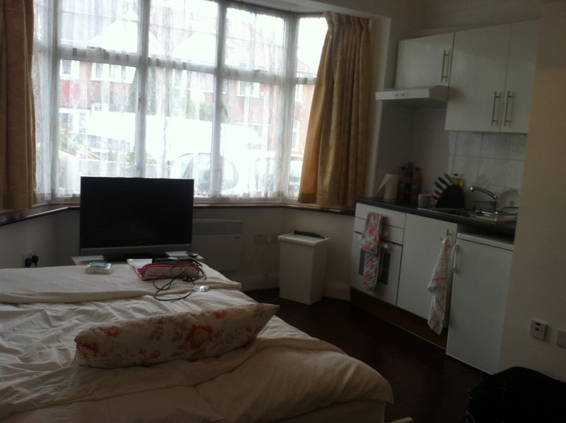 A self-contained studio on the ground floor of a Victoria House with own shower/toilet and cooking facilities in the studio. The house contains two self contained studios on the ground floor where the one advertising is one of them. There are 3 bedrooms on the first and 2 bedrooms on second floor which are sharing the large kitchen on the ground floor and a small kitchen on the second floor and two bathroom and three toilets for the sharers. All the current tenants are young , quiet professional people.