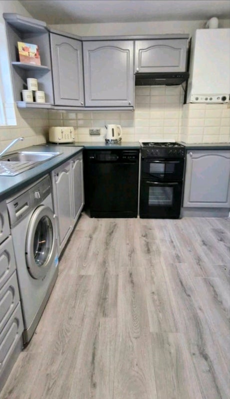 There is a brand new gas cooker and dishwasher in newly refurbished kitchen along with fridge freezer and washing machine.