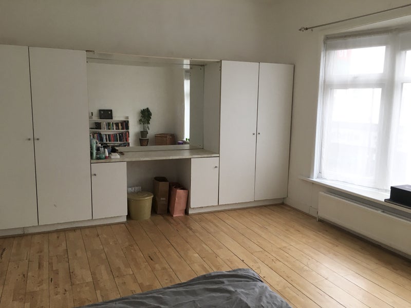 This is the larger room in the flat, incredibly spacious, featuring built in large wardrobes, a big mirror, a mattress, bed side table, and a book shelf. Rent is £575 per month, Internet, bills and council tax come up to around £110, so the total monthly cost is around £685.