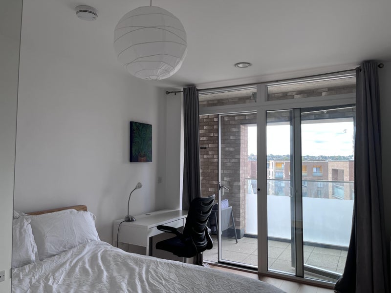 Your own fully furnished bedroom with a double bed, large wardrobe and optional desk. Large floor to ceiling windows ensure sunlight during the day and blackout curtains for the night. You can gain access to the balcony from your room.