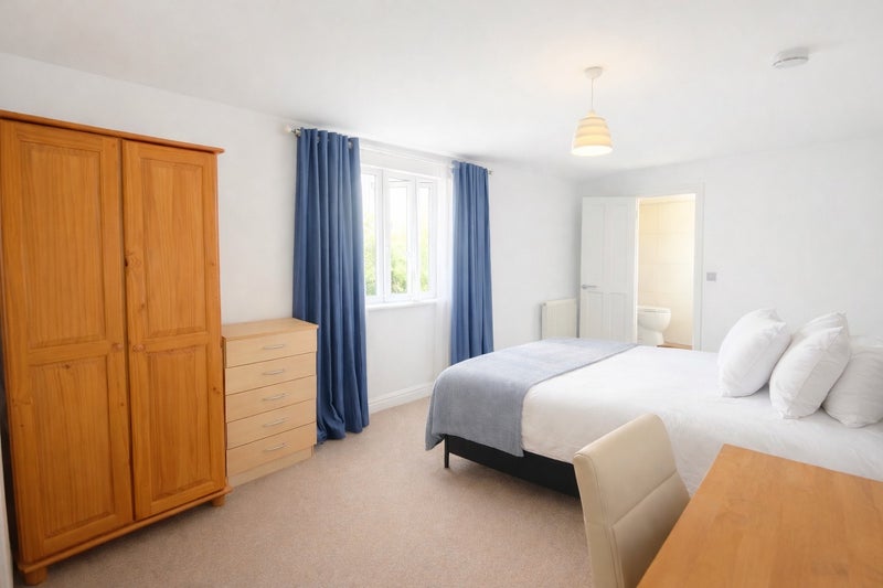 Large quiet 14m2 first floor double room with own 3m2 luxury fully tiled showerroom with toilet. Bills include furniture, all bills (gas heating, electric, water, council tax, highspeed broadband). Biweekly cleaning of communal areas also included. The house is EPC B and has double glazing throughout and is eco friendly having solar power, no expenses are spared on maintenance.