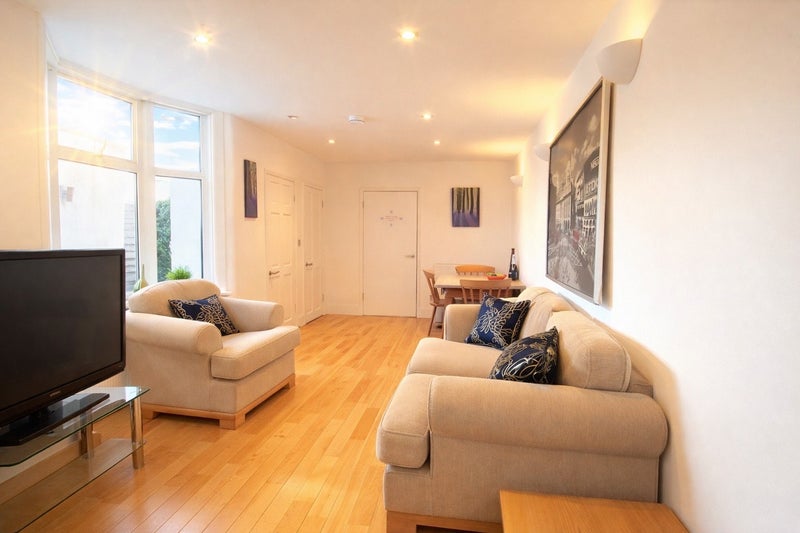 In the communal area, there is a spacious living room with sofas, flat TV and a dining room table to relax after a hard day's work. There is a well equipped, modern double to normal size kitchen with 2 sets of hobs and 2 sets of double sinks and plenty of space, and another kitchen table for dining there too. It has all the appliances from dishwasher to ovens, microwaves, 3 full-size fridge freezers and lots of storage space. At the back of the property, there is a lovely quiet decked backyard and garden courtyard where you can relax in the sun with garden furniture and umbrella.