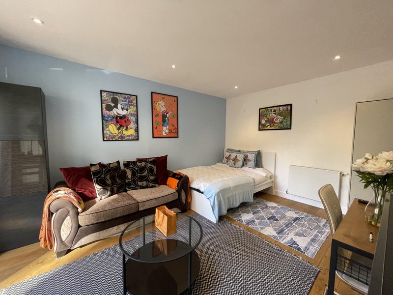 This oversized lounge-style room feels like your own mini studio. Situated in a gated complex in North Greenwich, it offers maximum privacy and comfort — perfect for professionals who value space and quiet.