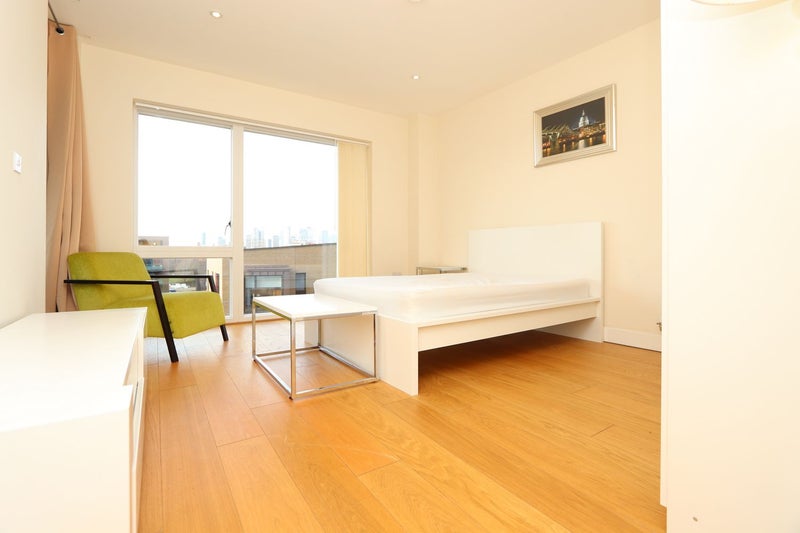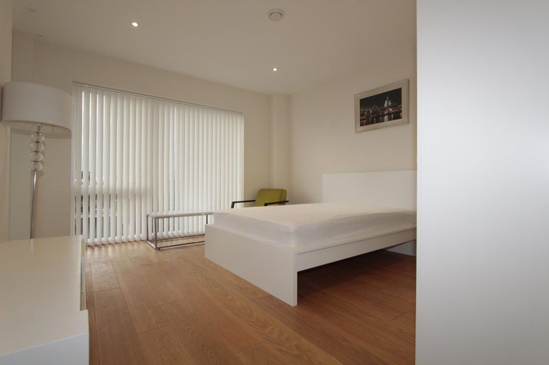 A bright and modern room with balcony access in a clean 3-bedroom flat, located in Greenwich (SE10 0GU).
