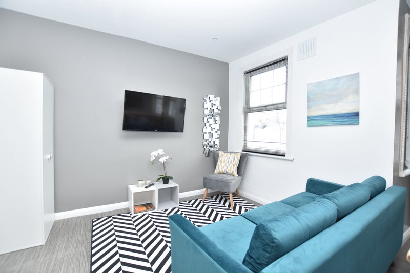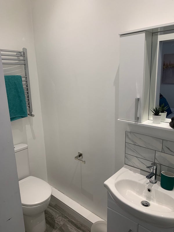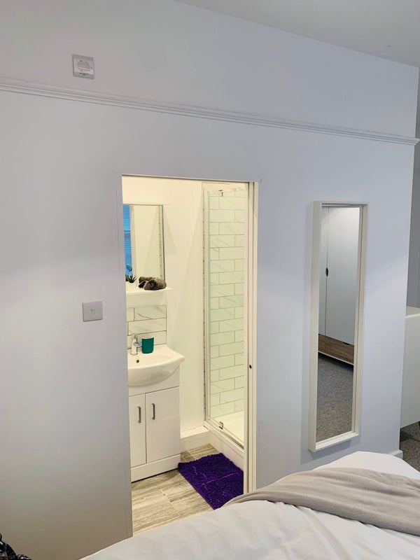 The room is fully furnished with a comfortable double bed, wardrobe, chest of draws, desk, and bedside cabinet. The private en suite is of a high standard and the shower system allows for high usage. Loads of natural light in both the bedroom and en suite. Working from home is easy