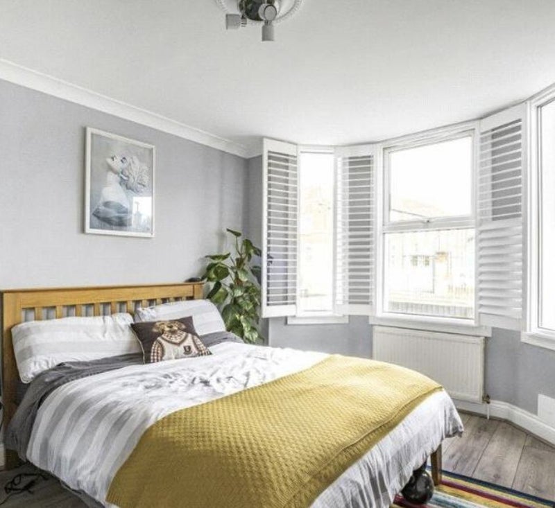 • Bedroom: Spacious and peaceful with window shutters and massive built-in storage.