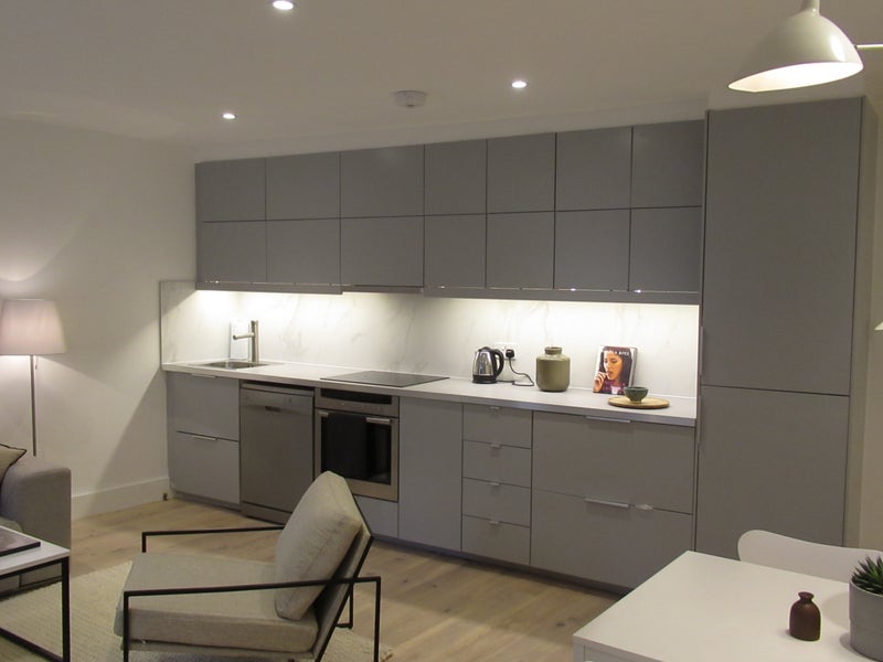 There's a fully stocked, contemporary open plan kitchen with a microwave, dishwasher and electric cooker with induction hobs. The modern living room includes a 42 inch Full HD Smart TV with Netflix and Sky Cinema (Sports channels can be added for a small additional monthly cost) as well as a comfortable double sofa, arm chair and dining table.