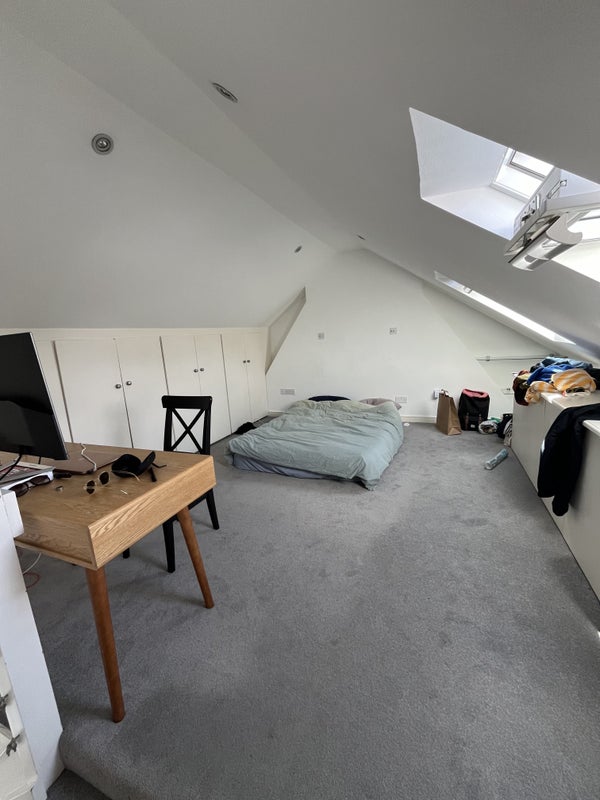 The flat is spacious, full of natural light, and was recently refurbished. It comes unfurnished, but I’ve already furnished everything except for the second bedroom—so you’d just need to bring your own bed. The available room is upstairs, and there’s also a beautiful terrace to enjoy. The neighbourhood is fantastic.