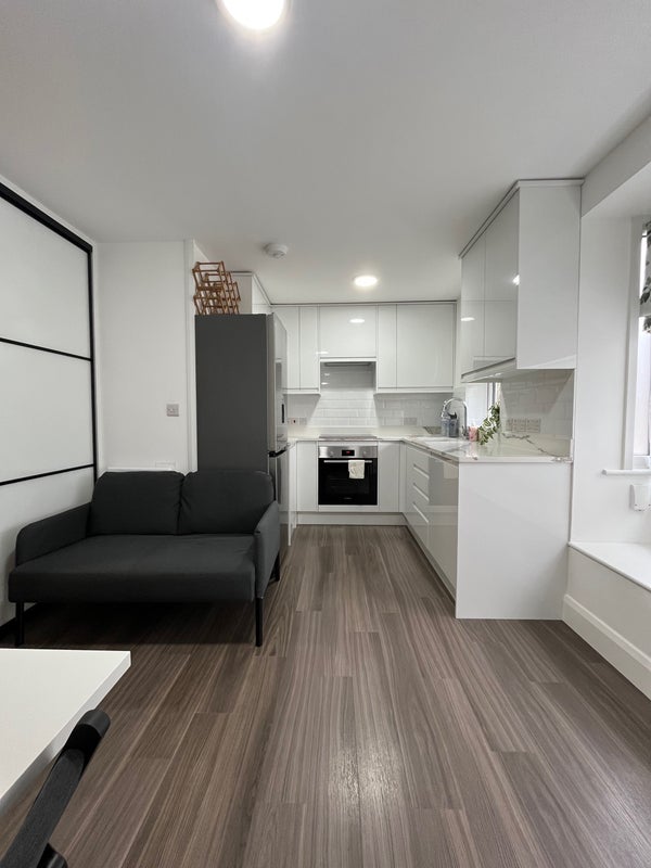 The property features a sleek open-plan living space with a contemporary kitchen, stylish partitioned sleeping area, and a smart shower room. Bright, well-designed and efficiently laid out, it’s ideal for a single professional or couple looking for comfortable, low-maintenance living in a well-connected West London location.