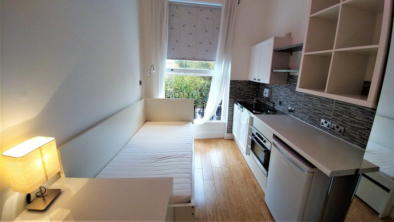 A bright and fully furnished SINGLE BEDSIT (sorry, no option for bedsit on this website, so advertised as a studio) in the heart of Notting Hill, with access to a big shared garden. Contains own kitchen, and the bathroom facilities are shares with 3 others.