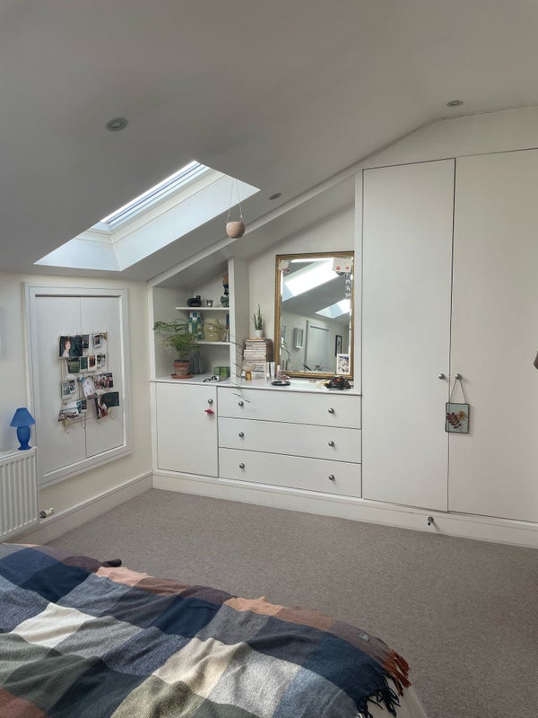 It’s a spacious room with lots of built in storage space, which has an en-suite attached and lots of lovely light. Bills are usually around £155 per month. Free parking outside the house.
