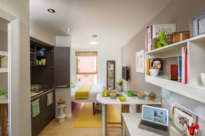 All Canto Court rooms are self-contained studios, complete with a kitchenette with microwave/oven, hob and fridge, and all come with an en-suite bathroom with a shower, sink and toilet. There is a double bed and each room also has a study area and comes with a TV and Wi-Fi.