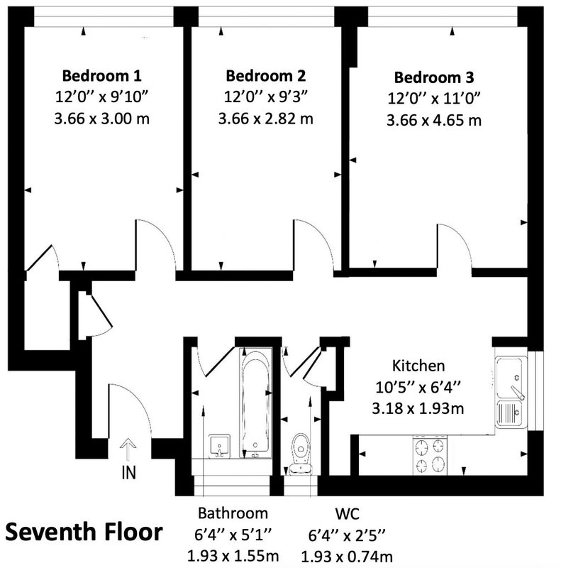 The flat comprises 3 double bedrooms, 2 bathrooms, and a modern kitchen and dining area. The flat is on the second floor of a secure block with elevator access.