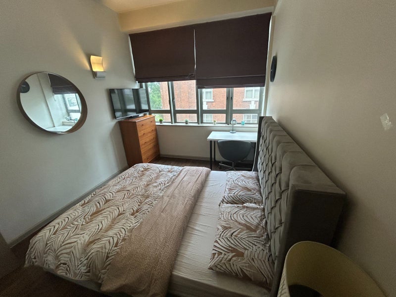 The room is beautifully furnished with a desk, TV and wardrobe in the room.
