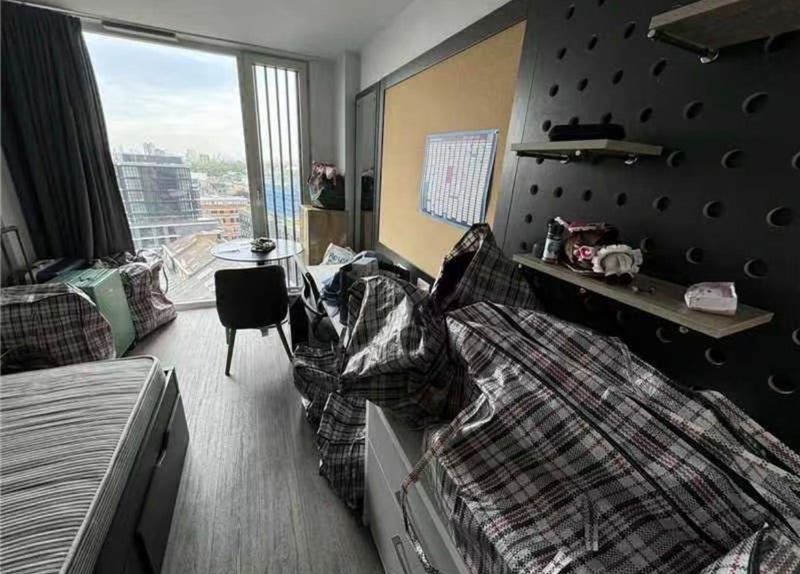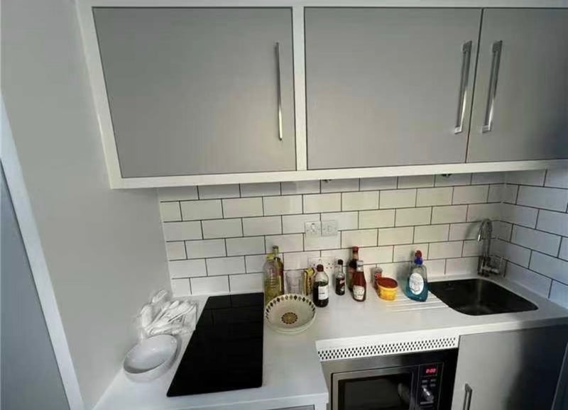 A bright student studio on the 7th floor with large floor-to-ceiling windows and excellent natural light. The flat includes a private dining area, making it ideal for UCL and central London students who want privacy, comfort and convenience.
