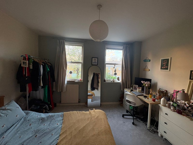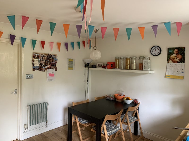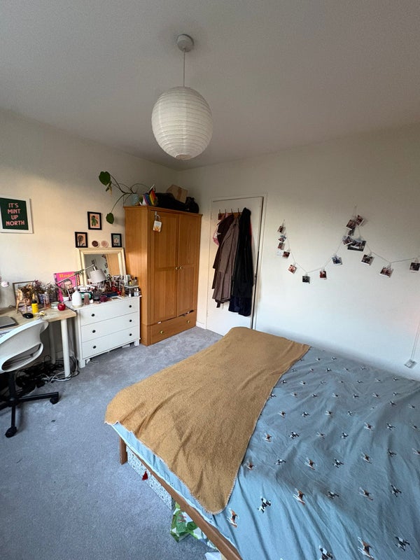 About the room: It’s a cute and light double room on the first-floor of the house. The room comes with a double bed, chest of drawers, bed side table and a wardrobe with extra storage space on the landing just outside the room which you share with Phoebe. There's also space for a desk in the room and clothes rail so you have a space to work from home if needed. (Desk, Mirror and Clothes rail NOT included). We also have a fortnightly cleaner for communal spaces. Bills come to £100-150 (depending on month).