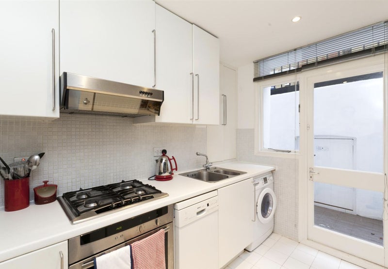 The apartment is in a safe, well-maintained building, tucked around the corner from Fitzrovia’s famous “Coffee Quarter.” The kitchen is fully equipped and benefits from a dishwasher and a large fridge-freezer. The outside decked patio is reached via double french doors off the living area and is west facing. The apartment feels like a a little 'house' as the bedrooms are on the top floor and the living area and patio on the lower floor.