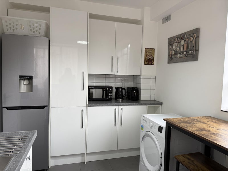 The eat-in/dining kitchen is fully equipped with 2 fridge-freezers, washer-dryer plus separate tumble dryer, dishwasher, plus air fryer, coffee machine and blender. There is a modern bathroom shared between 3 rooms, with plenty of storage and separate toilet. The cleaner cleans the kitchen, bathroom and hall every two weeks, with cleaning equipment and materials provided. The WIFI is ultra-fast fibre optic to building.