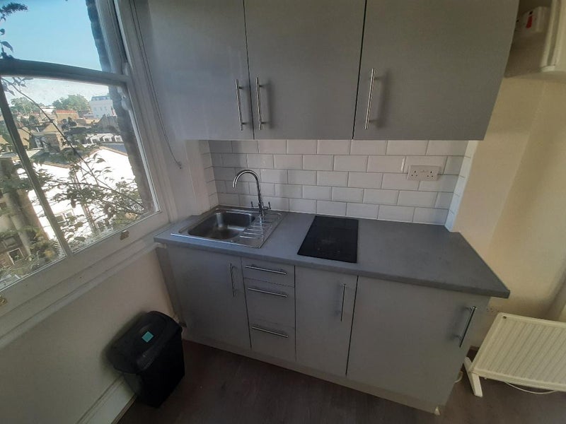 A new tenancy required within 14 days as vacant now. Own new bathroom with bathtub, WC and shower + vanity basin. Plus your own kitchen with electric hotplate. Please note there is no washing machine in the studio, but there is a laundrette nearby with new machines. Also please not the tube line runs at the back of the property, very low down and this studio is on the second floor.