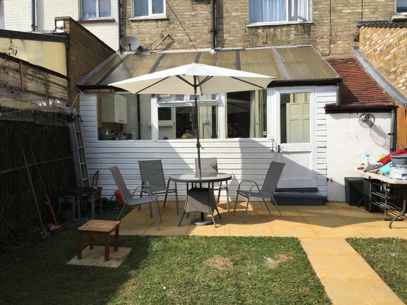 There is one shared living room, large garden with barbecue area and off street parking. Conservatory and bathrooms on both floors.