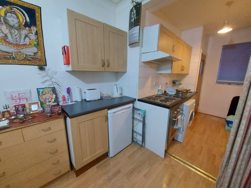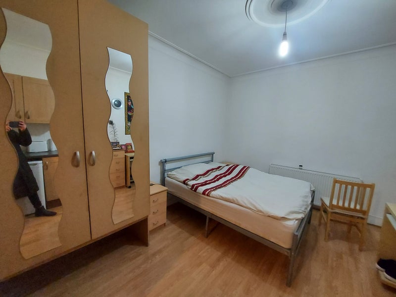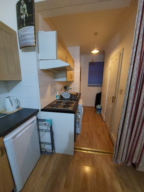 Spacious studio flat in a pretty area near local shops and transport links. Separate fully fitted kitchen, bathroom and bedroom/ living area. Wooden floors throughout, newly refurbished. Fully furnished with a double bed, large double wardrobe and desk. Suit professional single/ student.