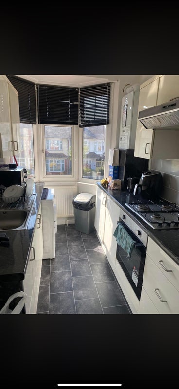 This room is located in Palmers Green on a quiet road. It is a 3 bed flat split across 2 floors, on the 1st floor there is 2 bedrooms, a kitchen and a bathroom. On the 2nd floor there is another bedroom and a living room.