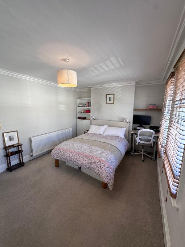 We are two girls in our early 30s with a lovely spacious double bedroom available from 6 June, with move-in flexibility throughout the month. Our home is a large 3-bed terraced house in Parsons Green, and the bedroom available is the beautiful primary bedroom with 3 built in wardrobes!