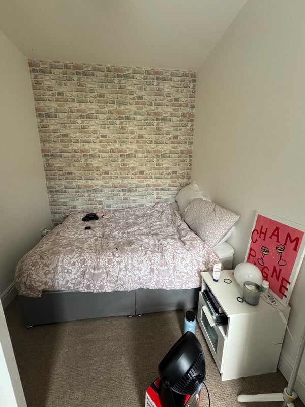 - smaller room on offer is a comfortable double with furniture including double bed (with mattress), bedside table, chest of drawers, wardrobe. The wardrobe holds luggage on top if needed! Larger bedroom does not have chest of drawers