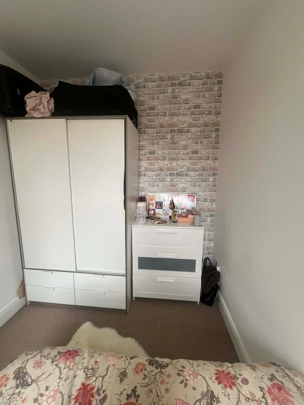 - The room on offer is a comfortable double with furniture including double bed (with mattress), bedside table, chest of drawers, wardrobe. The wardrobe holds luggage on top if needed!