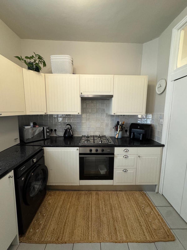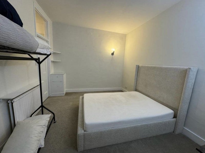 Both bedrooms are well-proportioned doubles. The main bedroom (10’7” x 13’7”) is spacious and comes furnished with a double bed and chest of drawers. The second bedroom (11’6” x 11’2”) is also a comfortable double, furnished with a double bed, desk, and built-in storage.