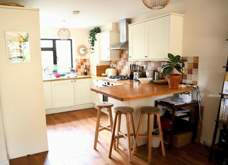 The house has 2 floors including: 1 bathroom with toilet, 1 additional separate toilet downstairs, a big open plan kitchen, a big living room. The down stairs open plan living area leads out to a beautiful spacious garden with a BBQ.